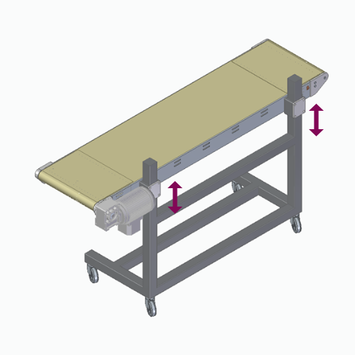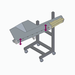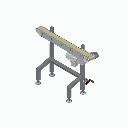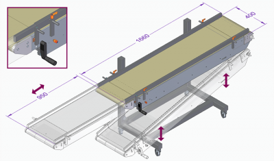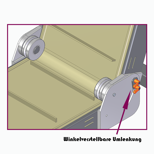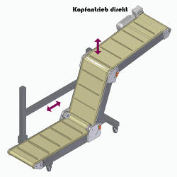 Mit Kopfantrieb, Winkel und Laufhöhe sind frei einstellbar. 1/3 der Bandlänge ist ausziehbar. Längenverstellung mit Handkurbel.