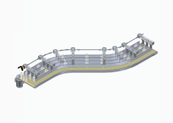 Gurtbreite: Bandkörper – 20 mm Bandkörper: aus 3 mm VA Blech geschliffen Gestell: aus Quadrat Rohr 50 mm VA glasperlengestrahlt Lagerplatten: aus Aluminium eloxiert
